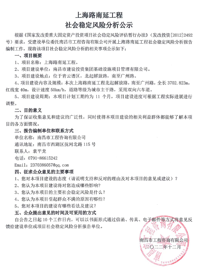 上海路南延工程社會穩(wěn)定風(fēng)險分析公示