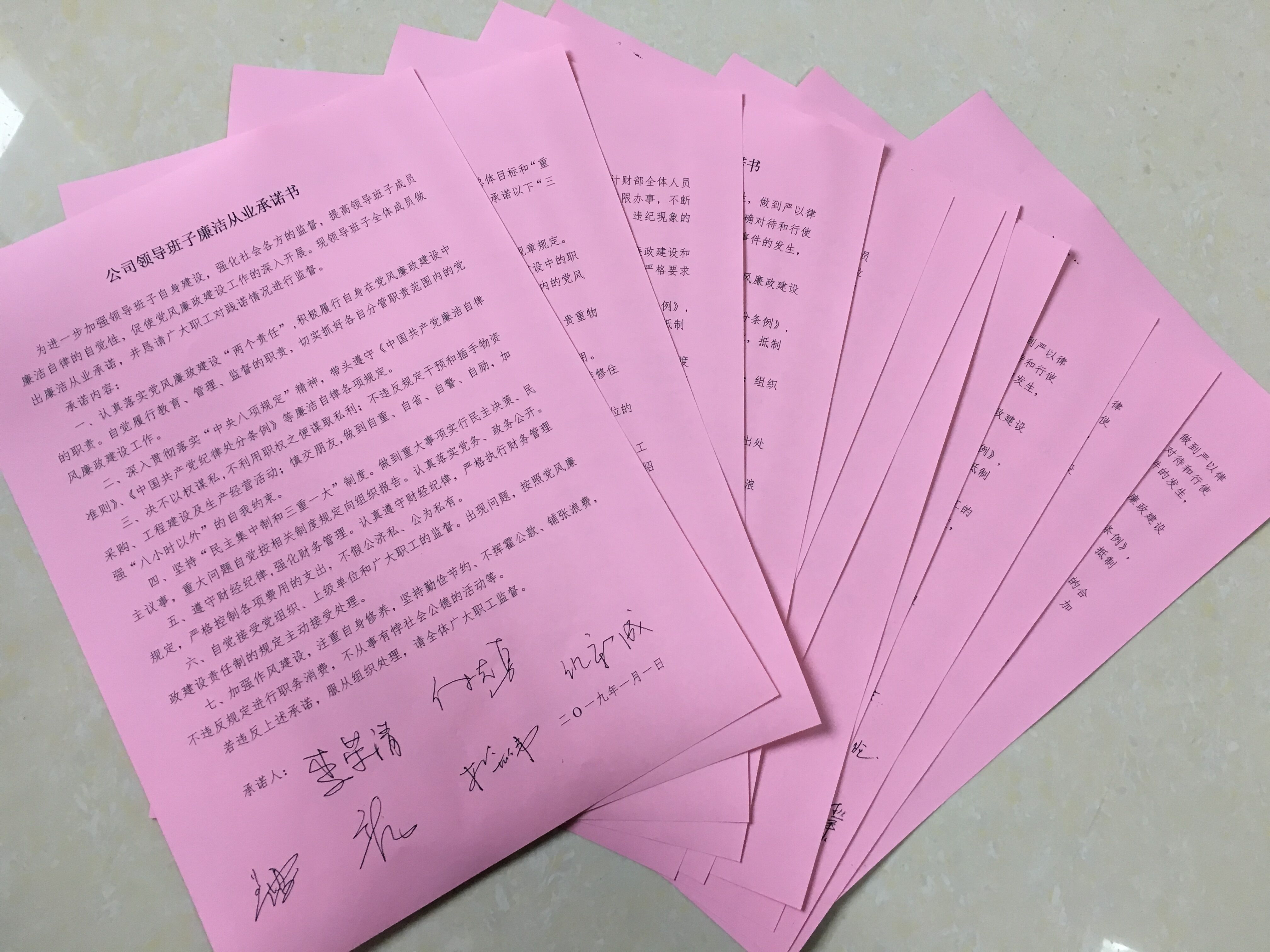為進(jìn)一步強(qiáng)化黨風(fēng)廉政建設(shè),增強(qiáng)廉潔自律的意識與自覺性,高速公司紀(jì)檢監(jiān)察室組織公司領(lǐng)導(dǎo)班子、各部室、站所負(fù)責(zé)人分別簽訂了2019年黨風(fēng)廉政建設(shè)責(zé)任書,共11份,責(zé)任書把反腐工作與各部室自身工作相結(jié)合,從遵守規(guī)章條例、加強(qiáng)作風(fēng)建設(shè)、嚴(yán)明紀(jì)律規(guī)矩、管理監(jiān)督職責(zé)等方面內(nèi)容,進(jìn)一步明確責(zé)任,做到一級抓一級,層層抓落實。