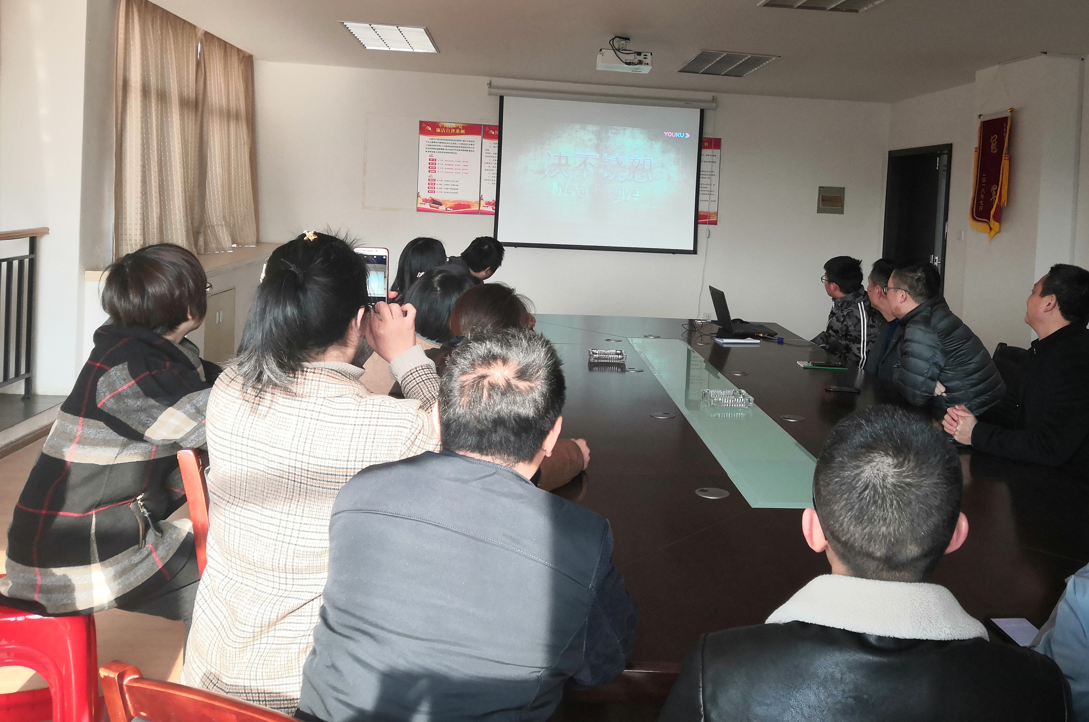 首先,涂繼亮向大家傳達(dá)了《關(guān)于我市三起漠視侵害群眾利益問(wèn)題典型案例的通報(bào)》文件精神。隨后,觀看反貪題材電影《決不饒恕》。