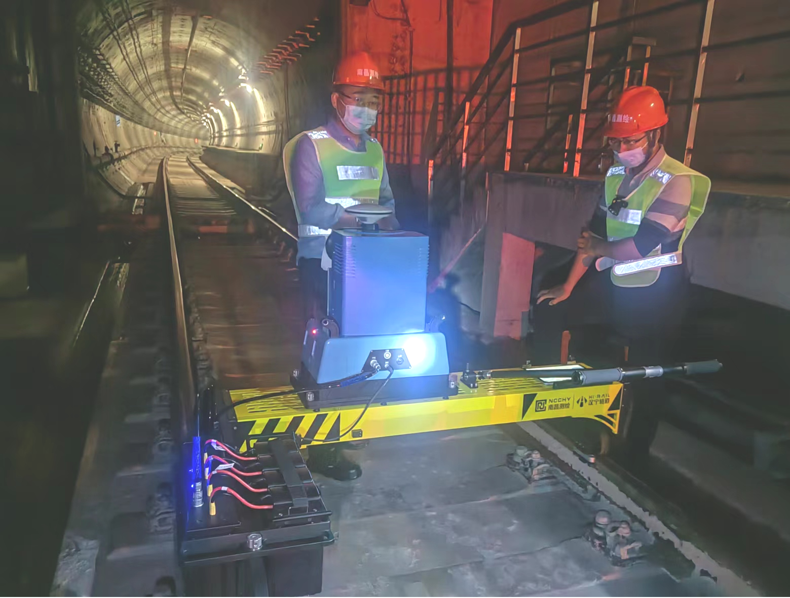 地鐵隧道移動三維掃描檢測現(xiàn)場(左)