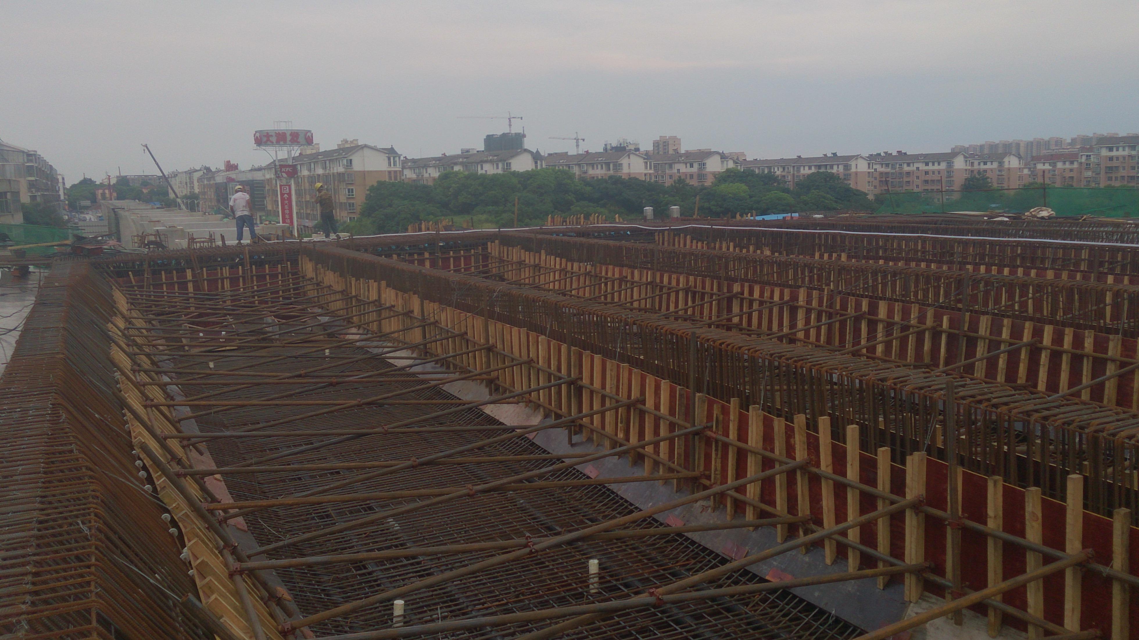 2015年7月22日9點58分南外環(huán)高速公路首件跨徑30米、寬33.5米的大型預(yù)應(yīng)力砼現(xiàn)澆箱梁在城南路298-299號墩成功澆筑。